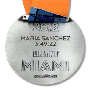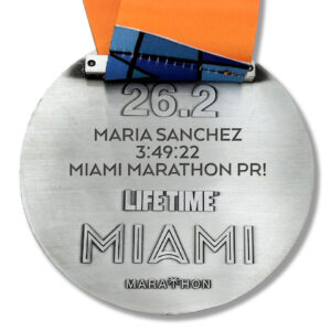 Celebrate your passion, perseverance, and personal success on event day by personalizing your Miami Marathon & Half Marathon Finisher medal at the post-race Finish Festival. Add a custom message with your Name, Finish Time, and special message and proudly wear your medal.